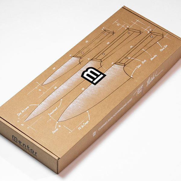 Bonjour. Merci pour votre retour. Concernant l'emballage, ce dernier est prévu pour protéger vos couteaux pendant le transport. En cuisine, le Chef recommande d'accrocher vos couteaux sur une barre aimantée pour en profiter au quotidien en toute simplicité. Nous restons disponibles pour répondre à vos questions à l'adresse boutique@philippe-etchebest.com.